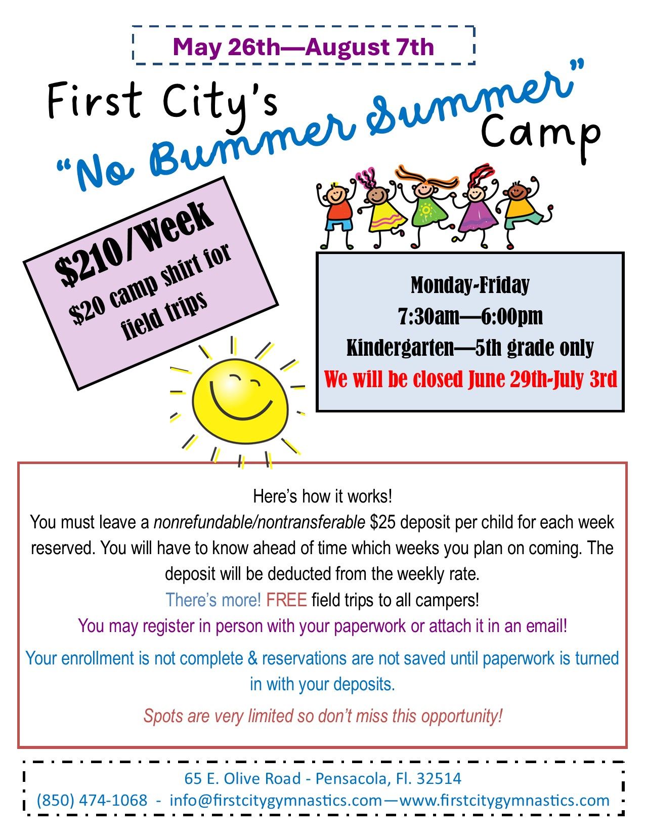 email us at: info@firstcitygymnastics.com